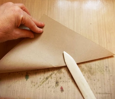 Now fold the card on the diagonal, using a bone scorer for a good clean crisp fold.