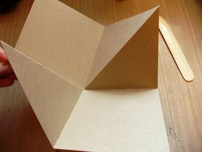 To create the exploding card cut three pieces of Kraft card 8" x 8". Take the first square, score and fold in half. You can make your card any measurement as long as you begin with a square piece of card. Then fold the same piece in the opposite direction.